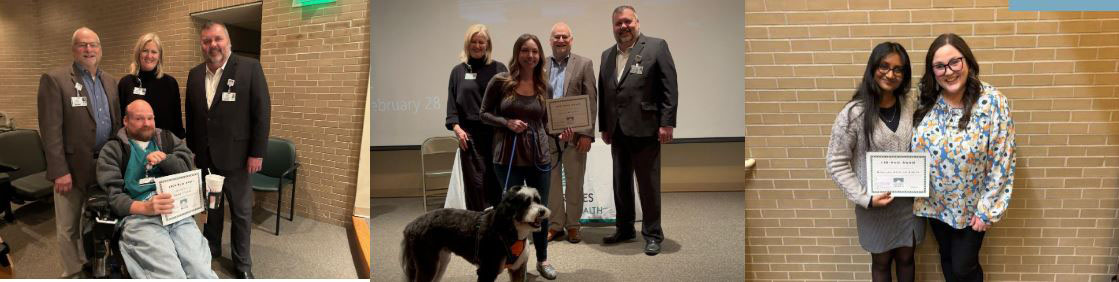 Three images of volunteers with CRH leadership at the recent service award ceremony.